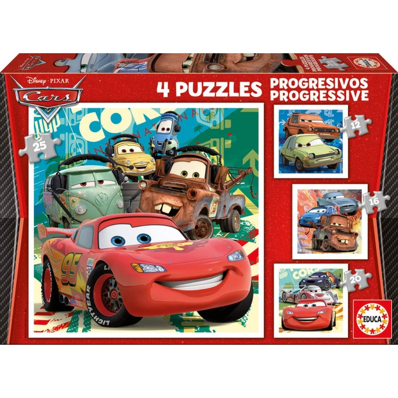 Set de 4 puzzles progresivos de 12, 16, 20 y 25 piezas; para que niños y niñas se atrevan con distintos niveles de dificultad a medida que crecen y ganan práctica en el montaje