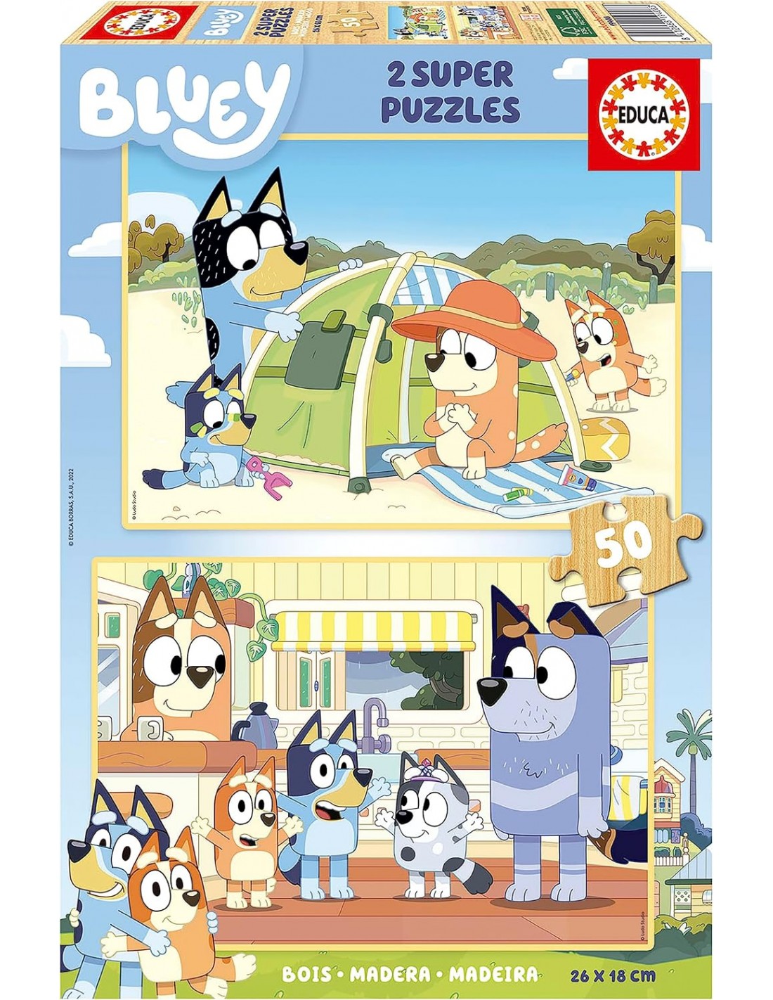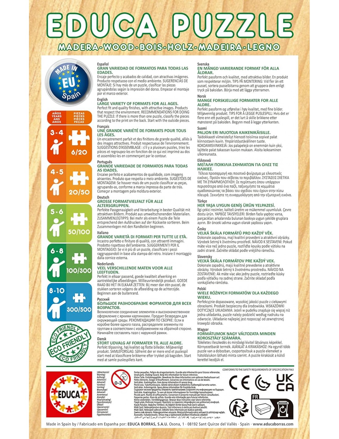 Incluye 2 puzzles de madera ecológica con 50 piezas cada uno. ¡Diversión por partida doble!. Estos vienen marcados por la parte trasera para diferenciarlos entre ellos. Medidas aproximadas una vez montado: 28 x 20 cm.