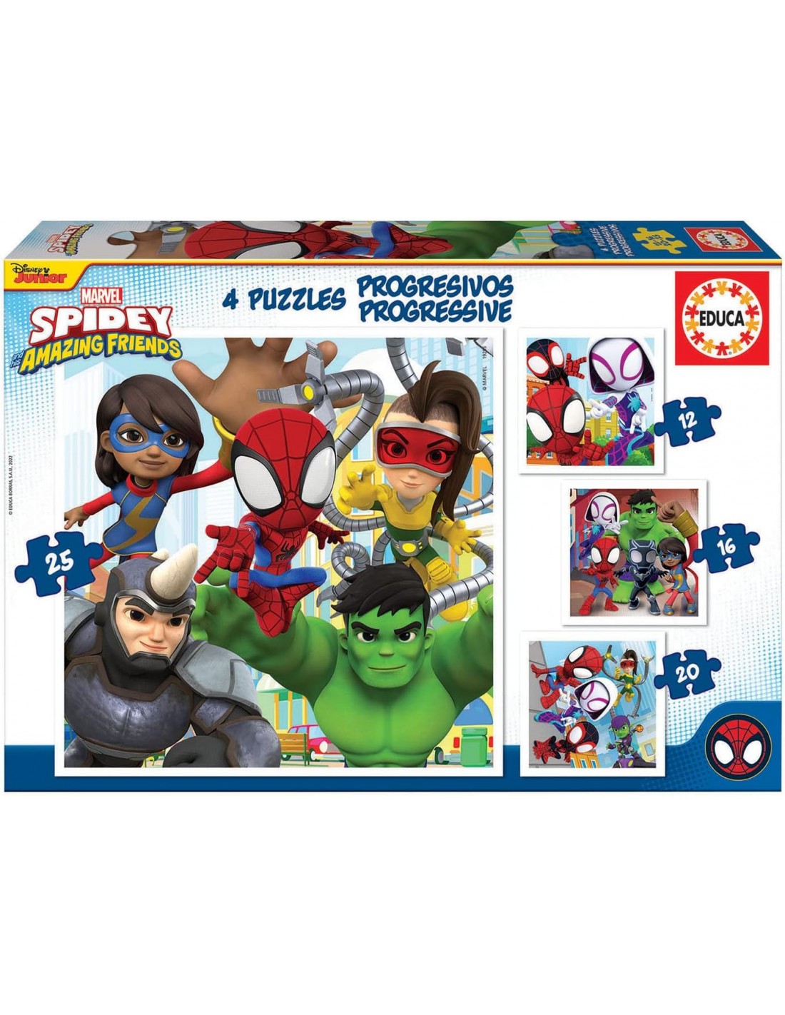 Incluye 4 puzzles progresivos de cartón reciclado con 12/16/20/25. Medidas aproximadas una vez montado: 16 x 16 cm.