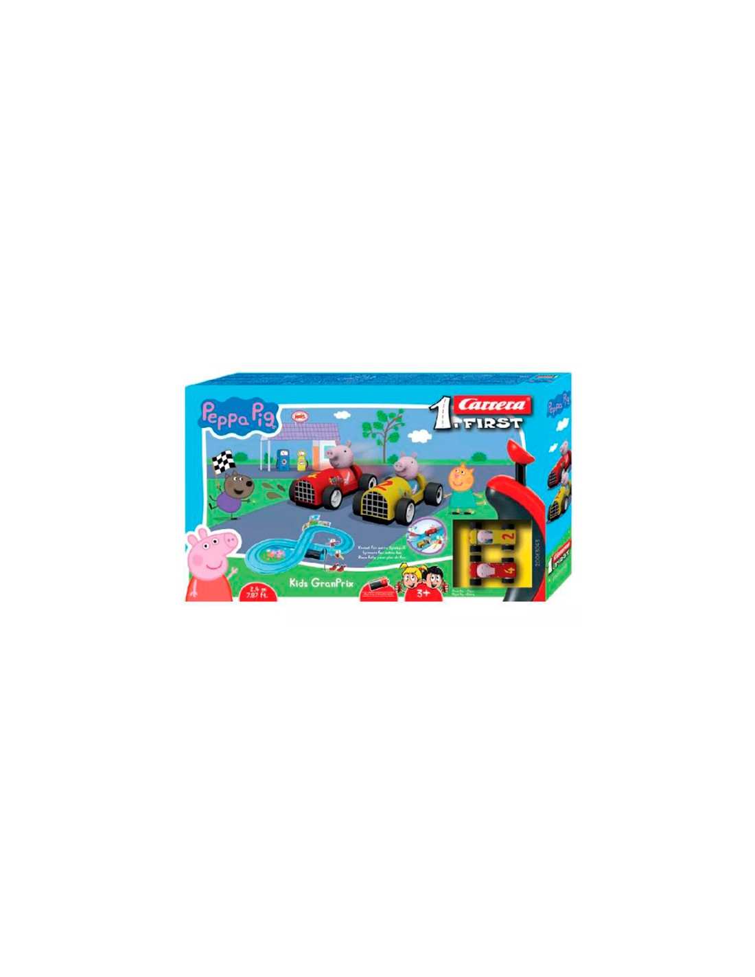 PEPPA PIG KIDS GRANPRIX Magnifico Circuito Coches Peppa Pig Grand Prix Carrera First, Hay mucha diversión con Peppa Pig y su hermano pequeño George, los hermanos Peppa y George compiten sobre el circuito. A los pilotos más pequeños les encantara este Circuito de Coches de Peppa y George. Uno, dos, ¡que comience la diversión! En el nuevo set Circuito Carreras Carrera FIRST "Peppa Pig - Kids GranPrix" Diversión ilimitada con la simpática Peppa Pig y George el juego Carrera First también es ideal para llevar.