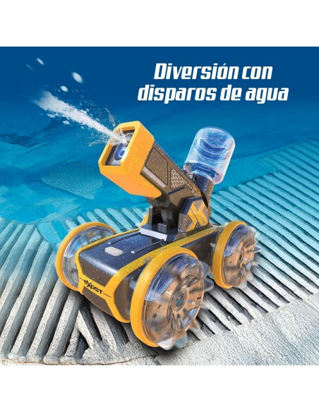 Juega en tierra o agua gracias a su diseño resistente y a prueba de agua, perfecto para aventuras al aire libre