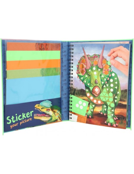 Diseño: Dino World by Depesche – Sticker Your Picture, libro de tapa dura para completar muchos emocionantes tiempos de piedra y motivos de dinosaurios