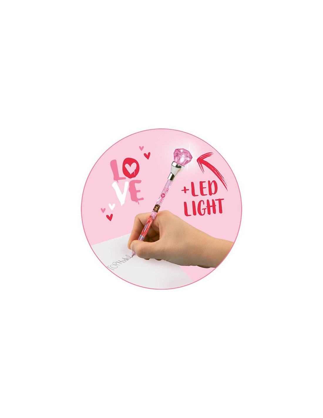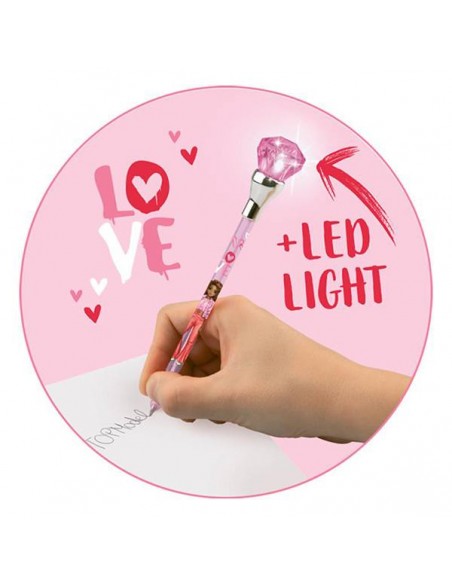 Bolígrafo de la colección ONE LOVE de TOPModel con un topper precioso de diamante que se enciende al presionar la punta del bolígrafo para escribir.