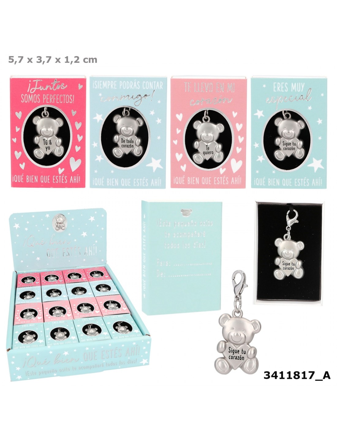 Pequeños compañeros para las llaves y su dueño/a. Estos monísimos llaveros plateados con forma de osito (aleación de zinc) y mini mosquetón llevan diferentes lemas, todos ellos muy chulos. Un detalle precioso para las personas más queridas.
