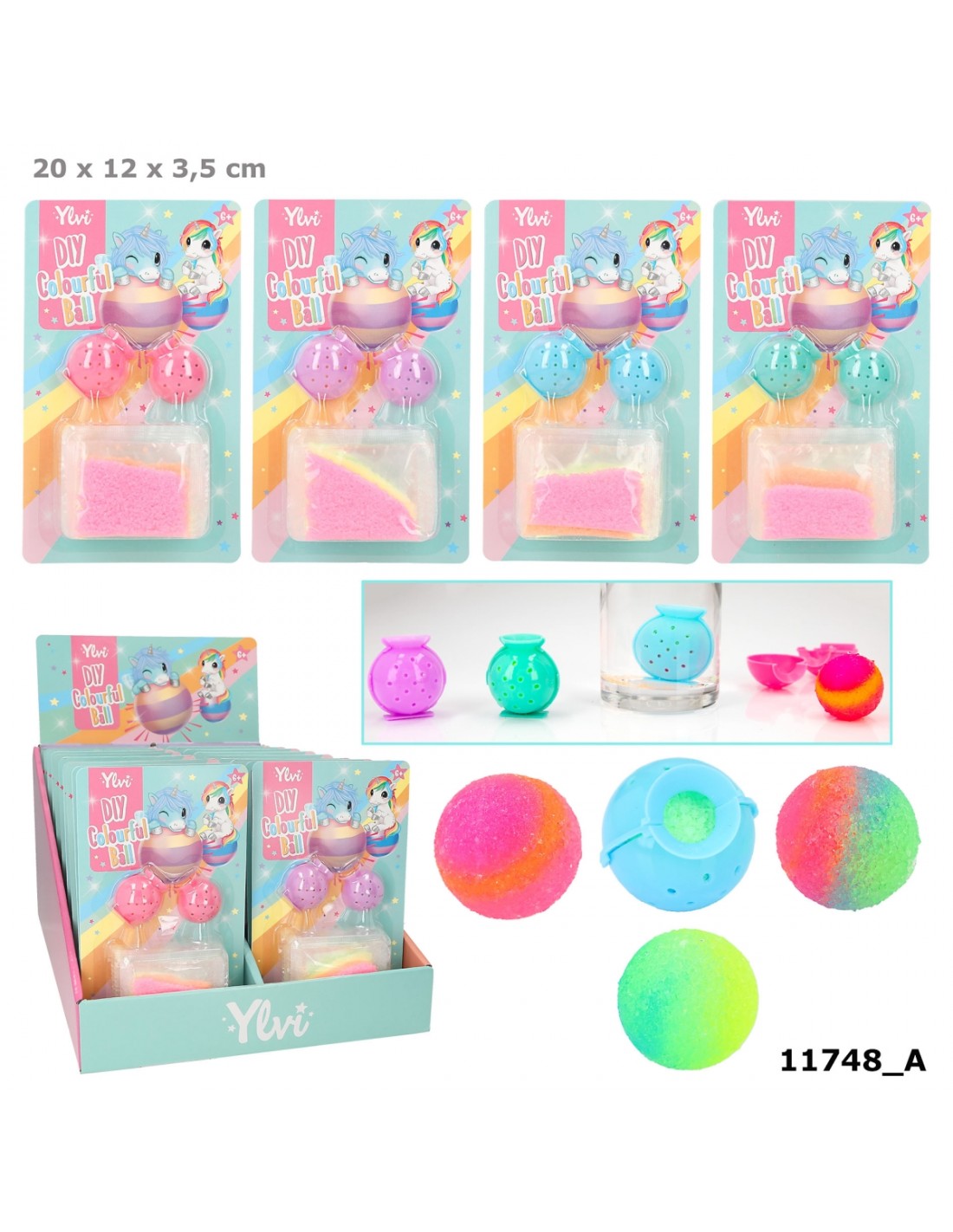 ¡Todo un acierto para hacer creaciones HTM! Con este set de Ylvi las pequeñas podrán crear sus propias pelotas de colores. Además, de forma muy sencilla: Verter el granulado de colores neón (fucsia, naranja, amarillo, verde, azul, lila) en el molde, sumergir 20 segundos en agua caliente y dejar transcurrir 15 minutos para que la pelota esté lista. Las pelotas botan durante uno o dos días, que es el tiempo que el granulado tarda en solidificarse por completo. Cuatro sets diferentes con moldes de colores distintos (fucsia, lila, azul, verde).
