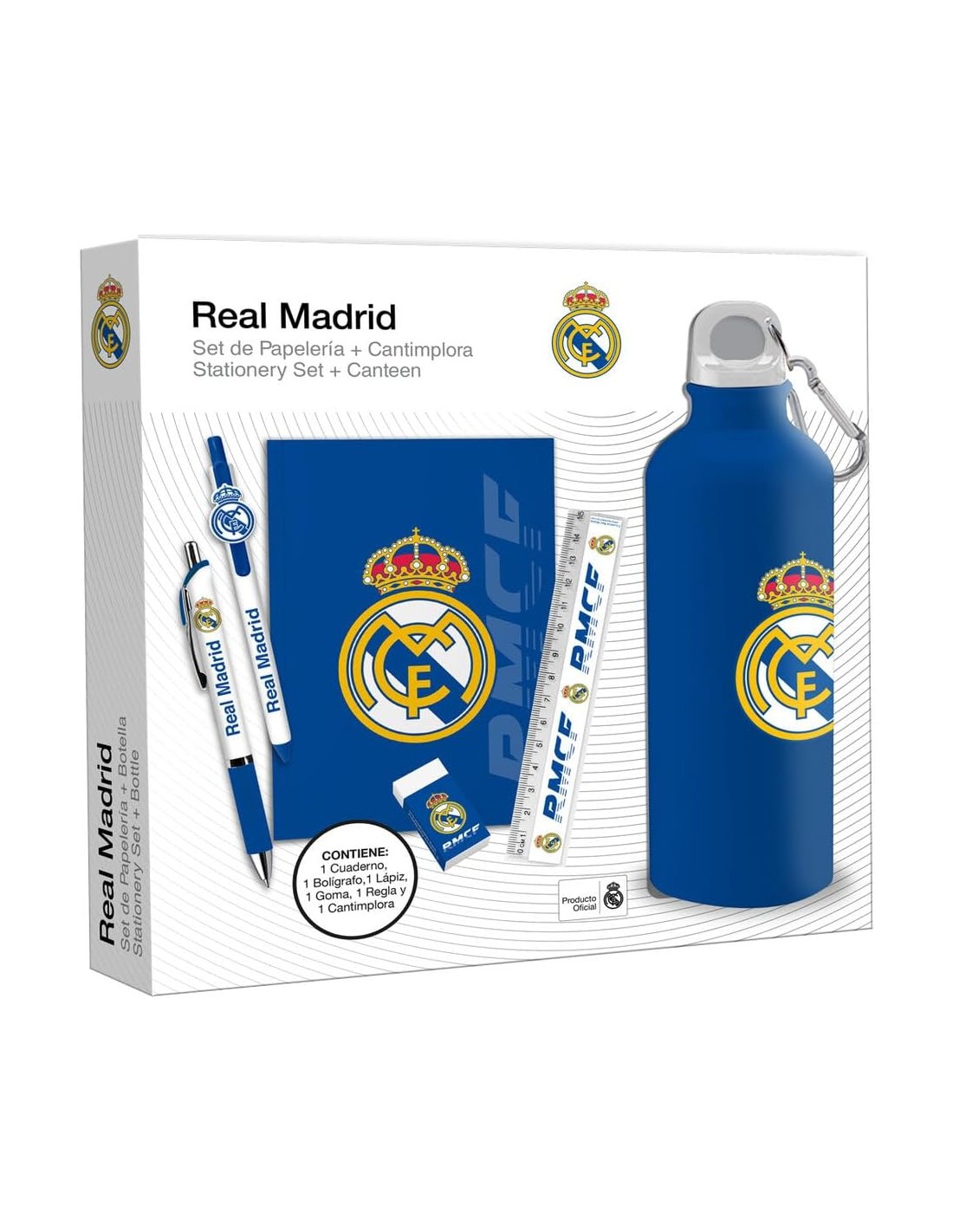 Set Papeleria Con Botella 650 Ml Real Madrid