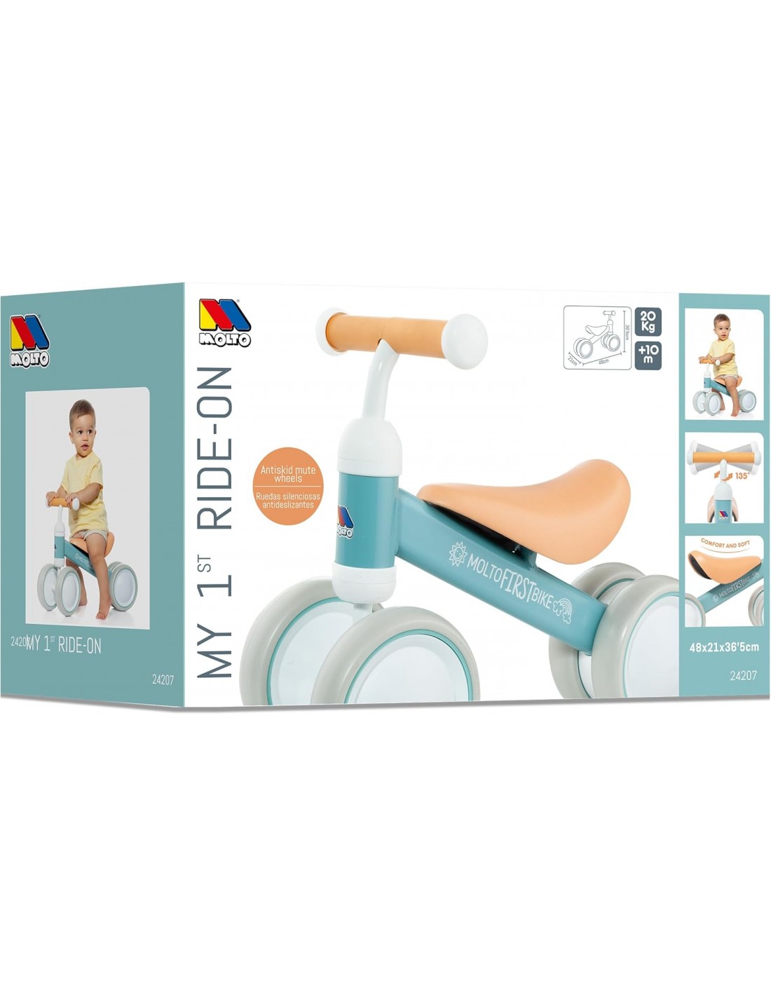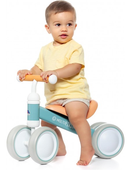 MOLTO Bicicletas sin Pedales Azul】Con el Corre Pasillos My First Ride On tendrás horas y horas de sana diversión desde la etapa más temprana de su desarrollo. Este correpasillos cuenta con una gran estabilidad gracias a sus 4 ruedas, sistema antivuelco y su limite de giro en el manillar. Tambien está hecho de materiales fuertes y resistentes aguantando hasta 20kg sin problemas. Además cuenta con ruedas antideslizantes y silencioasas para que el suelo de casa no se raye.