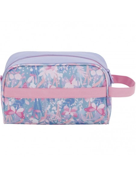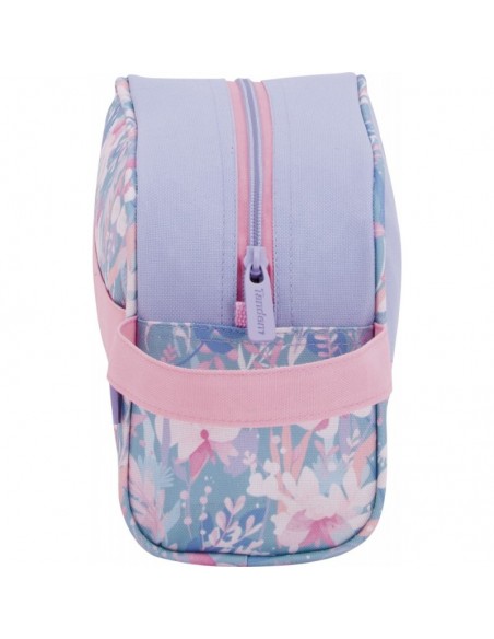 Neceser con un compartimento grande de apertura superior con cremallera, forrado con material isotermo en el interior. Dispone de dos asas: Una ubicada en un lateral facilitando el agarre y la otra es una banda trasera, la cual permite adaptarse a las barras de un carro de mochila o de maleta. No ocupa mucho espacio dentro de una mochila, bolso o maleta.