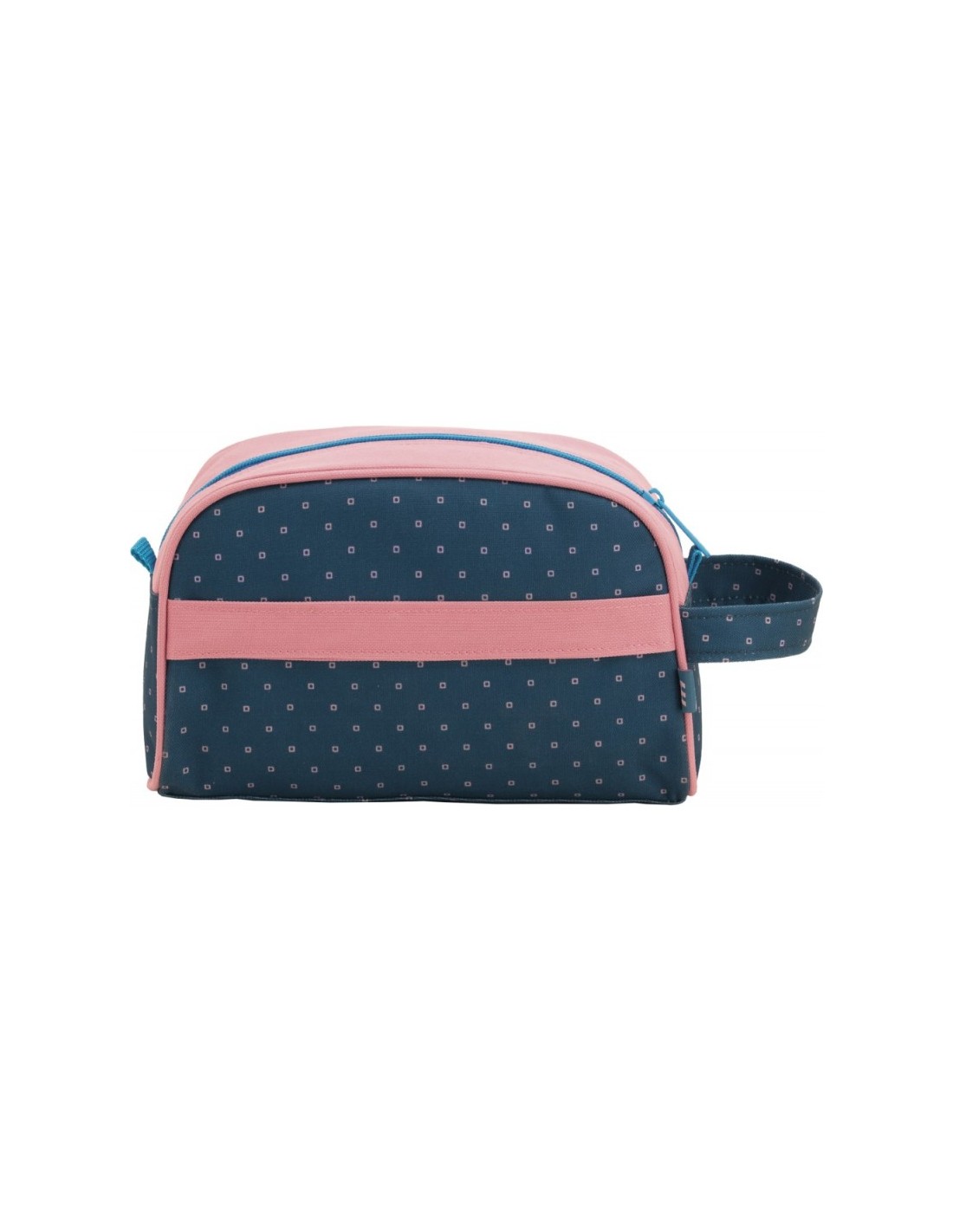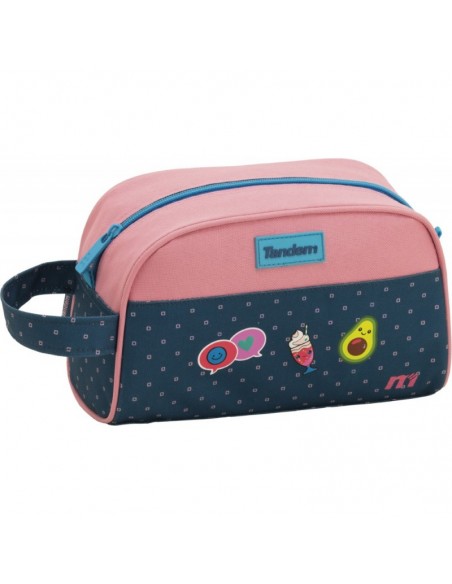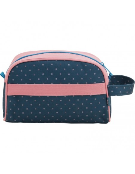 Neceser con un compartimento grande de apertura superior con cremallera, forrado con material isotermo en el interior. Dispone de dos asas: Una ubicada en un lateral facilitando el agarre y la otra es una banda trasera, la cual permite adaptarse a las barras de un carro de mochila o de maleta. No ocupa mucho espacio dentro de una mochila, bolso o maleta.