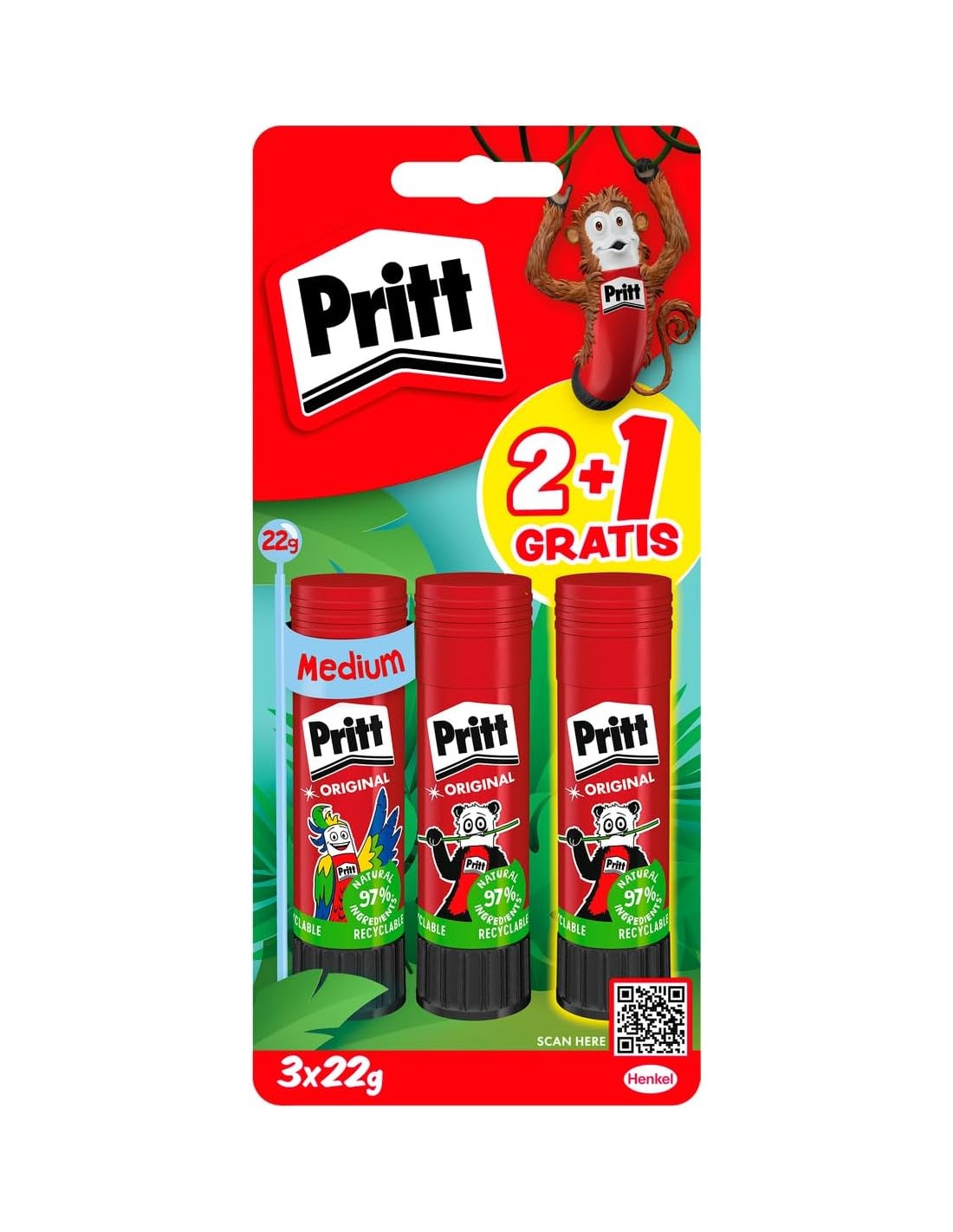 Envío y detalles – Pritt Barra Adhesiva, pegamento para niños sin disolventes recomendado para papel, cartón, cartulina y fotos, 97% ingredientes naturales, incluida el agua, transparente, 2+1 x 22 g