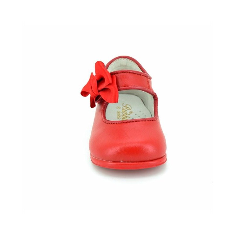 Preciosas merceditas para niñas con cierre de velcro y lazo decorativo de raso. Dispone de una plantilla de piel para un mayor confort y suela de goma adhente para mayor agarre. Disponible en color rojo, marino, blanco, rosa, Arena y beige. ¡Dignas de una princesa!